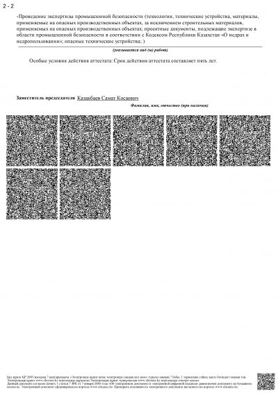 Результатом проведения экспертизы промышленной безопасности является экспертное заключение. В нашей компании трудятся высококвалифицированные специалисты и эксперты в сфере промышленной безопасности, разработки технической документации, сертификации, имеющие опыт надзорной и производственной деятельности, в числе сотрудников – перспективная молодежь, с отличием окончившая вузы Казахстана.